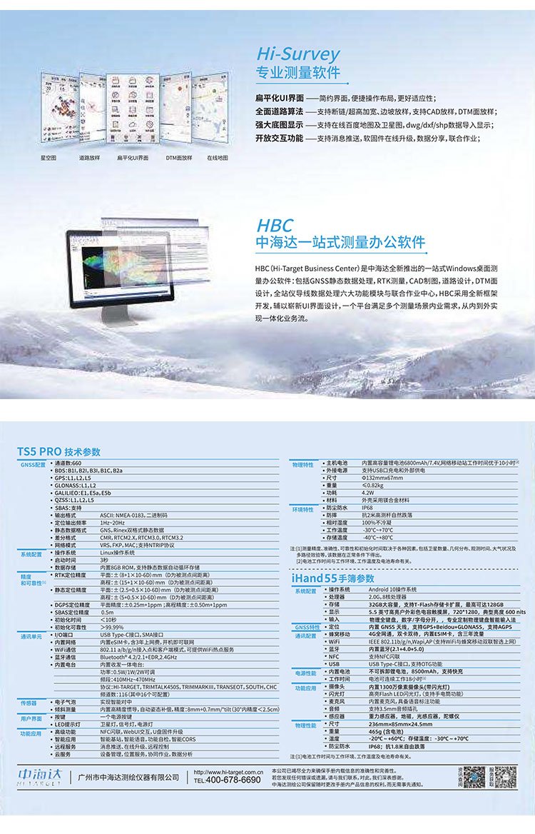 中海達RTK-TS5Pro慣導版,輕便小巧、快速測量,中海達集團旗下北斗海達品牌全新一代RTK-TS5Pro,中海達GPS測量儀以輕便小巧為理念,讓操作變得更簡單,快速提升測量效率。 機身...
